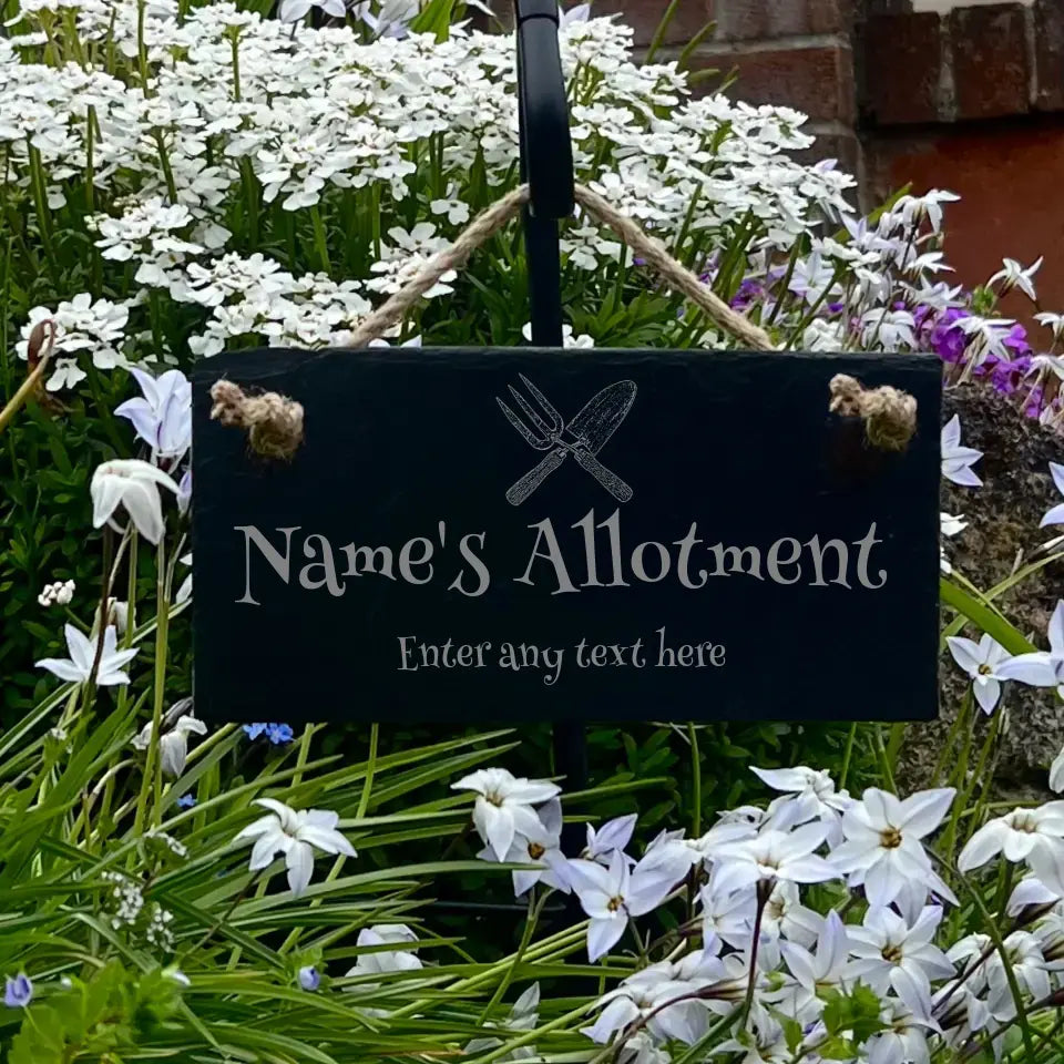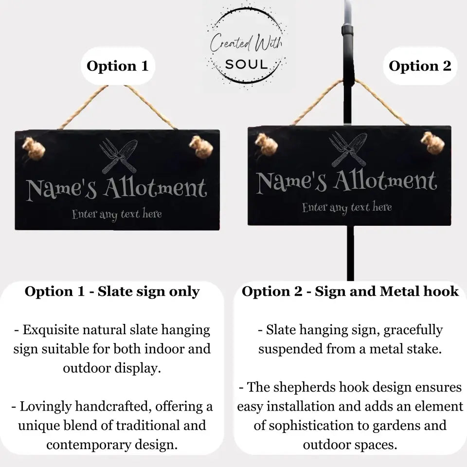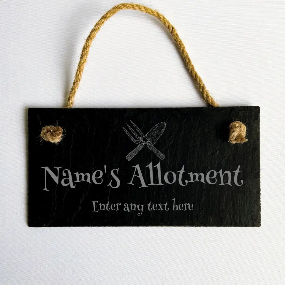 Fabriquée en ardoise naturelle, notre plaque à suspendre de 20 cm x 10 cm présente notre magnifique motif gravé. La plaque personnalisée est une plaque sur mesure qui peut inclure n'importe quel nom ou texte que vous souhaitez. Nos plaques peuvent être utilisées à l'intérieur ou à l'extérieur et constituent le cadeau parfait.